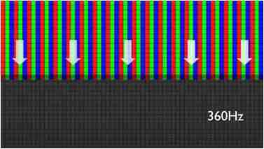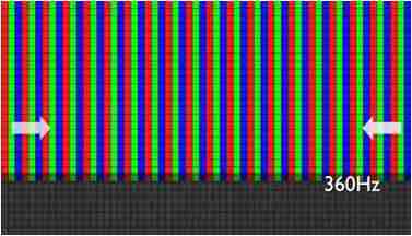 传统液晶驱动是从左到右单向进行,,在画面更新速度愈来越愈快的情况下,,位于驱动线路末端的右下角区域,,,,画素的闸极来不及在短时间内获得足够电压,,无法显示出正确的颜色资讯。。 |
